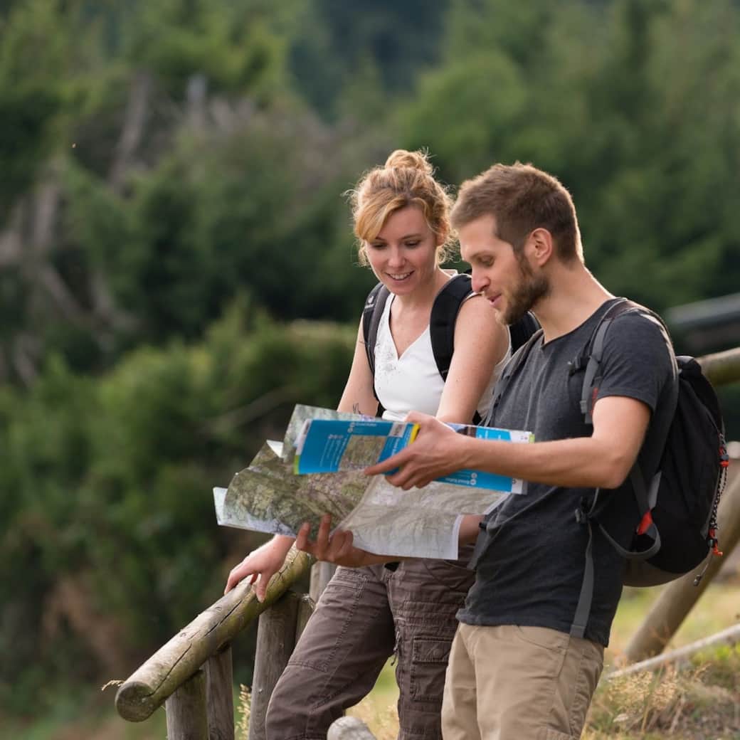 Garer vous au parking Notre Dame du Huebel, puis suivez les panneaux pour atteindre ce lieu unique qui surplombe le village de Soultzmatt et offre une vue unique sur les Vosges. Les plus sportifs tenteront la montée du Zinkoepfle depuis le village de Soultzmatt!